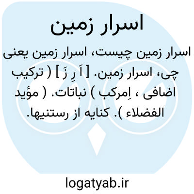 اسرار زمین. [ اَ رِ زَ ] ( ترکیب اضافی، اِمرکب ) نباتات. ( مؤید الفضلاء ). کنایه از رستنیها.