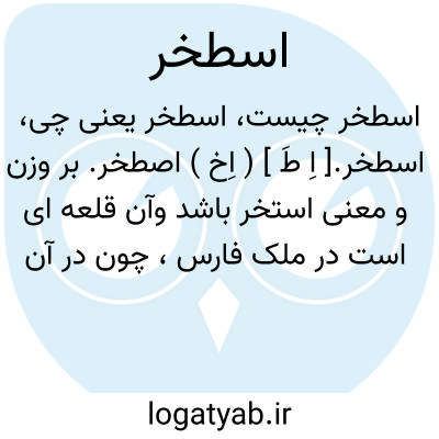 اسطخر.[ اِ طَ ] ( اِخ ) اصطخر. بر وزن و معنی استخر باشد وآن قلعه ای است در ملک فارس، چون در آن قلعه تالاب بزرگی بوده است بنابر آن به این نام اشتهار یافته است.بعضی گویند معرب استخر است. ( برهان ). رجوع به استخرو رجوع بفهرست التفهیم بیرونی شود. || ( اِ ) آبگیر. تالاب. ( برهان ). طرخه. جائی که آب قنات یا چشمه در آن بینبارند و گاه حاجت بمزارع روان کنند.