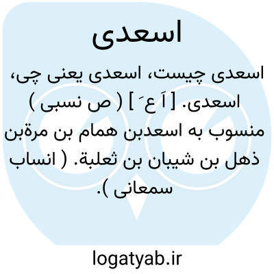 اسعدی. [ اَ ع َ ] ( ص نسبی ) منسوب به اسعدبن همام بن مرةبن ذهل بن شیبان بن ثعلبة. ( انساب سمعانی ).