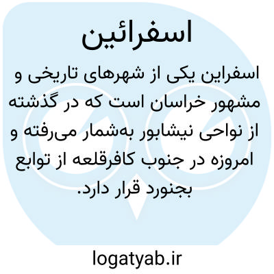 اسفرائین. [ اِ ف َ ] ( اِخ ) اِسفرایین. اِسفراین. اسپرائین. شهری است مشهور در خراسان. ( برهان ). شهری است مشهور از نواحی نیشابور بر منتصف طریق جرجان. و بعضی گفته اند اسپرآئین، چه اسپر سپرست و آئین رسم و عادت، و چون مردمش دائم سپر داشتند لهذا آن شهر موسوم به این اسم شد. ( سروری ). قصبه ای است بر طرف شمالی سبزوار واقع و از توابع نیشابور مشتمل بر پنجاه قریه، فواکهش خوب و گردکانش مرغوب. گویند چون مردم و اهالی آنجا درقدیم با تیغ ( ؟ ) میبوده اسپرآئین خوانده شده. اسفراین مخفف و معرب است. ( انجمن آرای ناصری ). و آن در جنوب کافرقلعه از نواحی بجنورد است. اسفرائین من کور نیسابور مخصوصة باخراج الافراد کانوشروان الذی افتخر به النبی صلی اﷲ علیه و سلم فقال ولدت فی زمن الملک العادل فهو افضل ملوک العجم و اعدلهم بالاجمال و ان کانت لاردشیر فضیلة السبق و مسقط رأس انوشروان مشهورٌ باسفرائین. ( ثعالبی در یتیمة الدهر ). قصبه مستحکمی در شمال شرقی ایران بین نیشابور و جرجان. نام قدیم آن مهرجان بوده و بعدها این اسم به یک قریه همجوار اطلاق شد و نیز گویند که این شهرک را اسفندیار بنا نهاده است و بقاعده انتساب به بانی، آنرا اسفرایین خوانده اند. در تاریخ 31 هَ.ق. عبداﷲبن عدی از غزاة اسلام این قصبه را فتح و بممالک اسلام ملحق ساخت، بعداً بکرّات بدست طوایف ملوک غارت و ویران گشته و بحال امروزی افتاد. این قصبه به علوم و ادبیات اسلامی خدمت بسیار کرده و علما و مشاهیر بزرگی مانند ابوحامد اسفراینی، یعقوب بن اسحاق اسفراینی و ابواسحاق اسفراینی و دیگران را پرورده است. ( قاموس الاعلام ترکی ). ولایتی است در خراسان، شمال جوین، دامنه جنوبی آلاداغ. مستوفی گوید: ناحیه کوهستانی و حاصلخیز اسفراین از اقلیم چهارم، طولش از جزایر خالدات صاد، عرض از خط استوا لولج، شهری وسط است و در مسجد آنجا کاسه ای بزرگ است از روی دورش دوازده گز خیاطی و از آن بزرگتر کاسه پیش از این کسی نساخته و بر جانب شمال آن شهر قلعه ای است محکم آنرا دز صعلوک خوانند و قریب پنجاه دیه از توابع اسفراین است و هوایش معتدل است اما چون آب از رودخانه ای که در پای قلعه است می آید و آنجا درخت جوز بسیار است ناسازگار میباشد و ولایت و توابع آن قنوات دارد و همه محصولات از انگور و میوه و غله داشته باشند. ( نزهة القلوب ج 3 ص 149 و 278 ). رجوع به اسفراین و سبراین و اسپراین و اسپرایین و رجوع بسفرنامه مازندران و استراباد رابینو صص 79 - 80 بخش انگلیسی شود.
