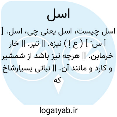 اسل. [ اَ س َ ] ( ع اِ ) نیزه. || تیر. || خار خرمابن. || هرچه تیز باشد از شمشیر و کارد و مانند آن. || نباتی بسیارشاخ که در آب ایستاده روید و از آن بوریا سازند. دوخ. ( منتهی الارب ). نی باشد که با آن حصیر و غربال کنند. || اسل بفتح اول و ثانی بلغت عربی اسم نباتیست که از آن حصیر میبافند و در کنار آبها و زمین آبدار میروید و نر و ماده میباشد، نررا کولان نامند. و دانه او سیاه مایل باستداره و بزرگ تر از تخم ماده و گیاه او خشن و سطبرتر از ماده و هر دو را مزاج مرکب از برودت غالب و حرارت قلیل و محلل ورمها و ضماد او جهت استسقا و مالیخولیا و خاکستربیخ او قاطع نزف الدّم جمیع اعضا و محلل خنازیر و جهت حکه نافع و ثمره ریزه او بقدر سه درهم با شراب جهت اسهال و نزف الدّم و با قوّه مدرّه و ضماد برگهای تازه متصل به بیخ او جهت گزیدن هوام و رتیلا نافع وثمر نوع غلیظ او بغایت منوم و تا پنج درهم او مورث سبات و مصلحش کلنگبین عسلی و فلافلی و حصیر دقیق او که ماده است جهت ابدان قویه و مستسقی و غلیظ او جهت ابدان یابسه مفید است. ( تحفه حکیم مؤمن ). و رجوع بتذکره ضریر انطاکی ج 1ص 44 و رجوع به نمص ( ضرب من الاسل ) شود. دیس. سمار. کولان. سخونوس الاَّجامی. و نوعی از آن را اُقسی خونس و نوع دیگر را اولوسخونس نامند.