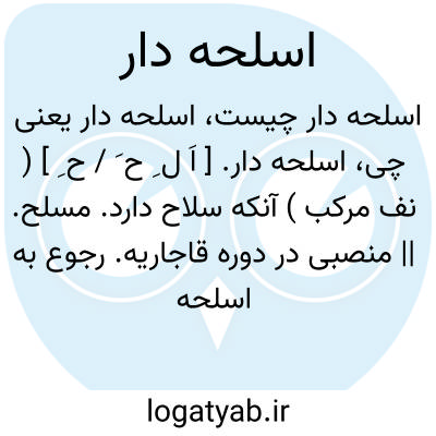 اسلحه دار. [ اَ ل ِ ح َ / ح ِ ] ( نف مرکب ) آنکه سلاح دارد. مسلح. || منصبی در دوره قاجاریه. رجوع به اسلحه دارباشی شود.