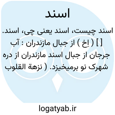 اسند. [ ] ( اِخ ) از جبال مازندران: آب جرجان از جبال اسند مازندران از دره شهرک نو برمی خیزد. ( نزهة القلوب حمداﷲ مستوفی مقاله ثالثه چ بریل لیدن 1331 ص 214 ).