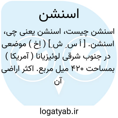 اسنشن. [ اَ س ِ ش ِ] ( اِخ ) موضعی در جنوب شرقی لوئیزیانا ( آمریکا ) بمساحت 420 میل مربع. اکثر اراضی آن دشت های ریگزار و بخشی بزرگ از آن در معرض طوفان نهر می سی سیپی است و این بخش بسیار حاصلخیز است و نیشکر و ذرت در آن روید.