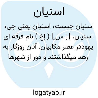 اسنیان. [ اِ س ِ] ( اِخ ) نام فرقه ای یهوددر عصر مکابیان. آنان روزگار به زهد میگذاشتند و دور از شهرها میزیستند و از ازدواج خودداری میکردند.