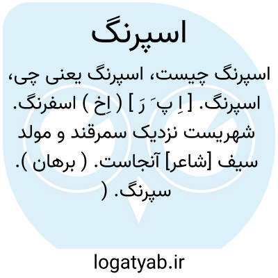 اسپرنگ. [ اِ پ َ رَ ] ( اِخ ) اسفرنگ. شهریست نزدیک سمرقند و مولد سیف [شاعر] آنجاست. ( برهان ). سپرنگ. ( جهانگیری ).