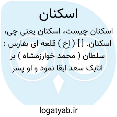 اسکنان. [ ] ( اِخ ) قلعه ای بفارس: سلطان ( محمد خوارزمشاه ) بر اتابک سعد ابقا نمود و او پسر بزرگتر خود اتابک زنگی را بنوا بسلطان داد و او قلعه اصطرخ و اسکنان را با چهار دانگ محصول فارس سلطان را مقرر داشت تا اجازت مراجعت یافت. ( جهانگشای جوینی چ قزوینی ج 2 ص 97 ). در نسوی نسخه پاریس ص 26 آمده: و تسلم قلعتی اصطخر و اسکناباد. ( چ هوداس ص 19: اسکناباد ). «و معلوم نشد که مقصود در متن همان قلعه اشکنوان معروف است یا مراد قلعه ای دیگر است ». ( جهانگشای جوینی ج 2 ص 97 حاشیه 3 ).