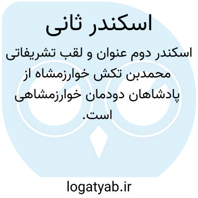بر پایهی منابع تاریخی، از جمله کتاب معتبر جهانگشای اثر عطاملک جوینی، در مراسم رسمی و اسناد دیوانی، سلطان محمد خوارزمشاه را مطابق سنت رایج، با لقب اسکندر الثانی میخواندند. این امر علاوه بر اشاره به موفقیتهای نظامی و قلمرو وسیع تحت حکمرانی او، بیانگر مشروعیت و اعتبار حکومت وی در سنت پادشاهی ایرانزمین نیز بوده است. بهکارگیری چنین لقبی، هوشمندی سیاسی در نمایش عظمت سلطنت و ایجاد احترام در میان همعصران را به نمایش میگذارد. برای کسب اطلاعات دقیقتر دربارهی زندگی، اقدامات و دورهی فرمانروایی این پادشاه، میتوان به مدخل مربوط به محمدبن تکش خوارزمشاه در منابع معتبر تاریخی و تذکرههای فارسی رجوع نمود. مطالعهی این منابع، جایگاه تاریخی وی را در بستر تحولات مهم منطقه، از جمله رویارویی با امپراتوری مغول، روشنتر خواهد ساخت.