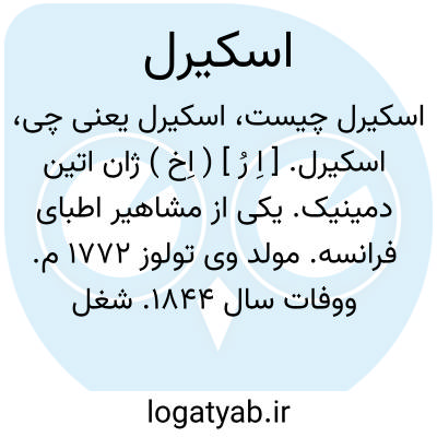 اسکیرل. [ اِ رُ ] ( اِخ ) ژان اتین دمینیک. یکی از مشاهیر اطبای فرانسه. مولد وی تولوز 1772 م. ووفات سال 1844. شغل عمده وی معالجه دیوانگان بود تا بدین وسیله بمعاملات شدیده که تا آن زمان درباره این بینوایان روا میداشتند خاتمه دهد. وی اصول جدیدی بوجود آورد و در بیمارستانهای متعدد ریاست اطبا را داشت و یکی از اعضای آکادمی طب و فنون پاریس بود.