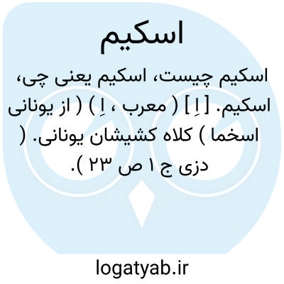 اسکیم. [ اِ ] ( معرب، اِ ) ( از یونانی اسخما ) کلاه کشیشان یونانی. ( دزی ج 1 ص 23 ).