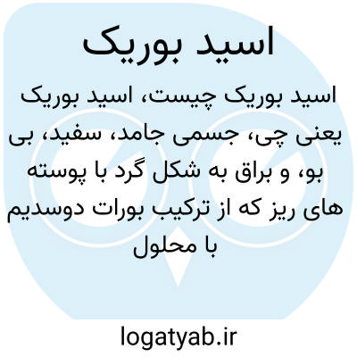 (یا: اسید بوراسیک) H۳BO۳، اسیدی حاصل از ترکیب اکسیژن و هیدروژن با نافلزّ بور. گندزدای ضعیفی است. در تولید شیشه و لعاب به کار می رود و حشره کشِ کارایی برای مقابله با مورچه ها و سوسک هاست.