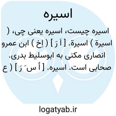 ( اسیرة ) اسیرة. [ اَ رَ ] ( اِخ ) ابن عمرو انصاری مکنی به ابوسلیط بدری. صحابی است.