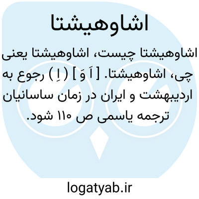 اشاوهیشتا. [ اَ وَ ] ( اِ ) رجوع به اردیبهشت و ایران در زمان ساسانیان ترجمه یاسمی ص 110 شود.