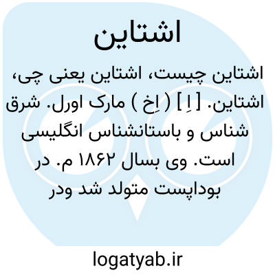 اشتاین. [ اِ ] ( اِخ ) مارک اورل. شرق شناس و باستانشناس انگلیسی است. وی بسال 1862 م. در بوداپست متولد شد ودر سالهای 1888 - 1899 م. تحقیقات باستانشناسی مفیدی در کاشمر و سرحد افغانستان انجام داد و سپس در سال 1900 - 1901 م. در ترکستان چین به حفریات پرداخت و در سالهای 1906 - 1908 برای تحقیقات باستانشناسی و جغرافیائی مسافرت وسیعی در آسیای مرکزی و مغرب چین کرد و در سالهای 1913 - 1916 در آسیای مرکزی و ایران بتحقیق پرداخت و کمی بعد در سالهای 1926 - 1928 در ترکستان و چین و بسال 1932 در اطراف تبت بتحقیقات خود ادامه داد و در موضع اخیر بود که از طرف مقامات چین برای ادامه تحقیقاتش موانعی بوجود آمد. اشتاین آثاربیشماری بجای گذاشته است که از آن جمله اند: 1- ویرانه های ختن 1903 م. 2- ختن باستانی 1912 م. و غیره.
