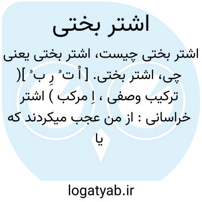 اشتر بختی. [ اُ ت ُ رِ ب ُ ]( ترکیب وصفی، اِ مرکب ) اشتر خراسانی: از من عجب میکردند که یا بنت ذویب، این نه آن خر است که با ما براه می آید، این اشتر بُختی است. من گفتم این نه آن خر است این کاری دیگر است. ( تاریخ سیستان ).