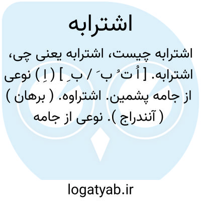 اشترابه. [ اُ ت ُ ب َ / ب ِ ] ( اِ ) نوعی از جامه پشمین. اشتراوه. ( برهان ) ( آنندراج ). نوعی از جامه پشمین و آنرا اشتراوه نیز گویند و در حقیقت جامه شتر بوده. ( انجمن آرای ناصری ).