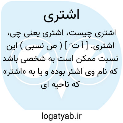 اشتری. [ اَ ت َ ] ( ص نسبی ) این نسبت ممکن است به شخصی باشد که نام وی اشتر بوده و یا به «اشتر» که ناحیه ای میان همدان و نهاوند است. ( از انساب سمعانی ).