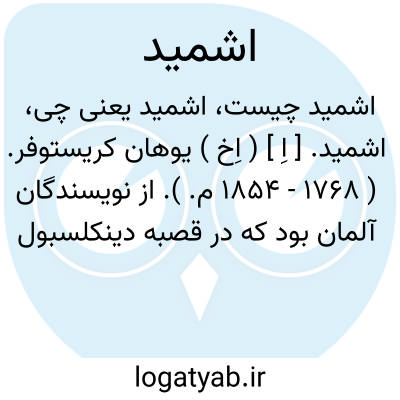 اشمید.[ اِ ] ( اِخ ) کریستو. ( 1740 - 1801 م. ). یکی از مورخان آلمان بود و تاریخی درباره روسیه تألیف کرد.
