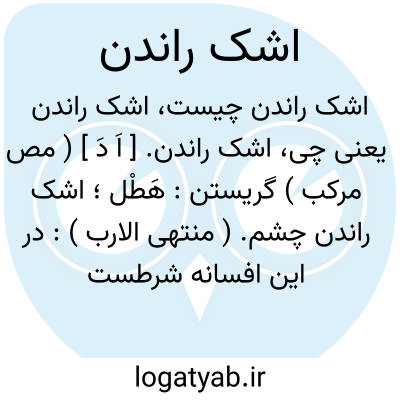اشک راندن. [ اَ دَ ] ( مص مرکب ) گریستن: هَطْل؛ اشک راندن چشم. ( منتهی الارب ):