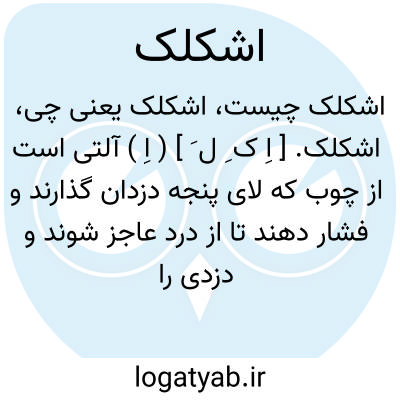 * اشکلک دادن (کردن ): (مصدر متعدی ) [قدیمی] چوب لای انگشتان متهم گذاشتن و فشار دادن تا به جرم خود اقرار کند.