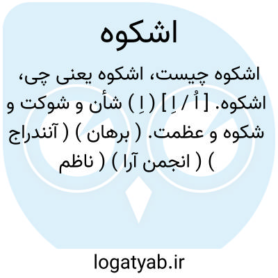 اشکوه. [ اُ / اِ ] ( اِ ) شأن و شوکت و شکوه و عظمت. ( برهان ) ( آنندراج ) ( انجمن آرا ) ( ناظم الاطباء ). عظمت و حشمت و آن را شکوه خوانند. مولوی معنوی فرماید: