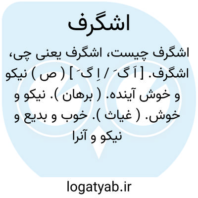 اشگرف. [ اَ گ َ / اِ گ َ ] ( ص ) نیکو و خوش آینده. ( برهان ). نیکو و خوش. ( غیاث ). خوب و بدیع و نیکو و آنرا شگرف نیز گویند. ( انجمن آرای ناصری ). خوب و بدیع وخوش آیند. ( فرهنگ نظام ). نیکو و خوش آیند. ( ناظم الاطباء ). خوب و بدیع و نیکو و خوش آینده و آنرا شگرف نیز گویند. ( آنندراج ). || ( اِ ) شأن و شوکت و عظمت. شأن و شوکت و حشمت. ( برهان ). شأن و شوکت. ( غیاث ). شأن و شوکت و عظمت. ( ناظم الاطباء ) ( آنندراج ). و رجوع به شگرف شود.