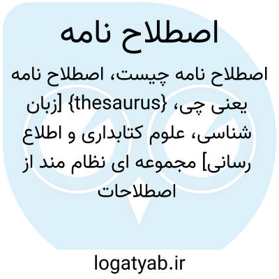 {thesaurus} [زبان شناسی، علوم کتابداری و اطلاع رسانی] مجموعه ای نظام مند از اصطلاحات تخصصی یک رشته که روابط معنایی میان آنها مشخص باشد