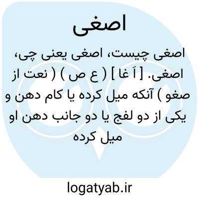 اصغی. [ اَ غا ] ( ع ص ) ( نعت از صغو ) آنکه میل کرده یا کام دهن و یکی از دو لفج یا دو جانب دهن او میل کرده است. ( از منتهی الارب ) ( از اقرب الموارد ).