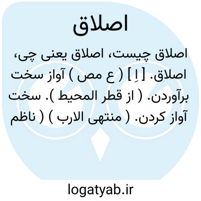 اصلاق. [ اِ ] ( ع مص ) آواز سخت برآوردن. ( از قطر المحیط ). سخت آواز کردن. ( منتهی الارب ) ( ناظم الاطباء ) ( آنندراج ). بانگ کردن. ( تاج المصادر بیهقی ) ( زوزنی ).