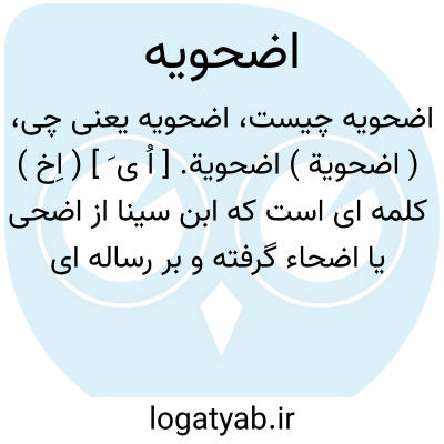 ( اضحویة ) اضحویة. [ اُ ی َ ] ( اِخ ) کلمه ای است که ابن سینا از اضحی یا اضحاء گرفته و بر رساله ای بنام معاد اطلاق کرده است وعلت نامیدن رساله مزبور بدین نام این است که در روز عید اضحی ختام یافته است. رجوع به تاریخ علوم عقلی در تمدن اسلامی تألیف ذبیح اﷲ صفا ص 257 و 287 شود.