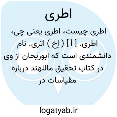 اطری. [ اَ ] ( اِخ ) اتری. نام دانشمندی است که ابوریحان از وی در کتاب تحقیق ماللهند درباره مقیاسات در چند موضع مطالبی نقل کرده است. رجوع به فهرست تحقیق ماللهند شود.