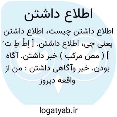 اطلاع داشتن. [ اِطْ طِ ت َ ] ( مص مرکب ) خبر داشتن. آگاه بودن. خبر وآگاهی داشتن: من از واقعه دیروز شهر اطلاع داشتم. ( فرهنگ نظام ). مستحضر بودن. وقوف داشتن. باخبر بودن. استحضار داشتن. مطلع بودن. معرفت داشتن: