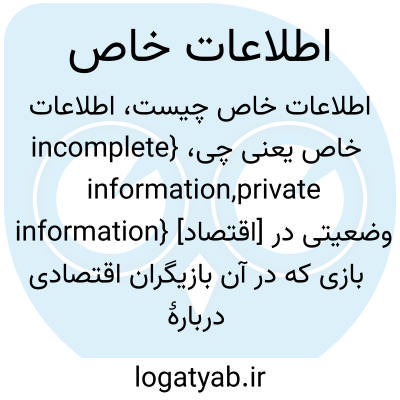 {incomplete information,private information} [اقتصاد] وضعیتی در بازی که در آن بازیگران اقتصادی دربارۀ درستی و میزان اعتبار اطلاعاتشان تردید دارند درحالی که بازیگرانی نیز هستند که به اطلاعات معتبر دسترسی دارند