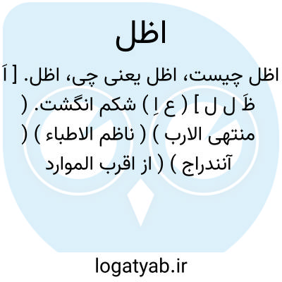 اظل. [ اَ ظَ ل ل ] ( ع اِ ) شکم انگشت. ( منتهی الارب ) ( ناظم الاطباء ) ( آنندراج ) ( از اقرب الموارد ). شکم انگشت. قسمت نزدیک جلو قدم از بیخ ابهام تا بیخ خنصر یا شکم انگشت نزدیک پشت قدم. ( از متن اللغة ). || شکم سپل شتر.ج، ظُل، شذوذاً. ( منتهی الارب ) ( آنندراج ) ( از ناظم الاطباء ). عجاج در قول خود: تشکو الوجی من اظلل و اظلل، بفک ادغام خوانده جهت ضرورت. ( منتهی الارب ) ( از اقرب الموارد ). اَظَل شتر؛ درون سپل آن. ج، ظُل و آن شاذ است زیرا کلمه اسم است نه صفت. ( از متن اللغة ) ( از اقرب الموارد ). زیر سَوَل اشتر. ج، اَظَلات، اظلال، اظالل. ( مهذب الاسماء ).