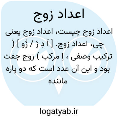 اعداد زوج. [ اَ دِ زَ / زُو ] ( ترکیب وصفی، اِ مرکب ) زوج جفت بود و این آن عدد است که دو پاره ماننده یکدگر توان کردن؛ ای دو نیم. و اول جفتها دو است و زوجهای متوالی: 2، 4، 6، 8، 10. ( از التفهیم بیرونی ص 34 ).