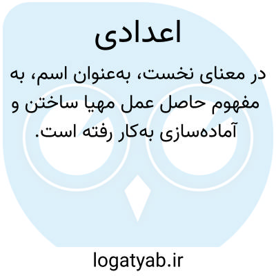 اعدادی. [ اِ ]( حامص ) حاصل عمل مهیا ساختن. ( از یادداشت مؤلف ).