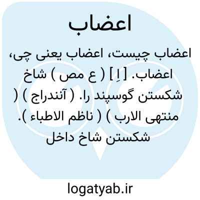 اعضاب. [ اِ ] ( ع مص ) شاخ شکستن گوسپند را. ( آنندراج ) ( منتهی الارب ) ( ناظم الاطباء ). شکستن شاخ داخل گوسپند و نیز شکستن یکی از شاخهای گوسپند بطورمطلق. ( از اقرب الموارد ). || گوش شکافتن ناقه را. ( از منتهی الارب ) ( آنندراج ) ( ناظم الاطباء ). سوراخ کردن گوش گوسپند و ناقه. ( از اقرب الموارد ).