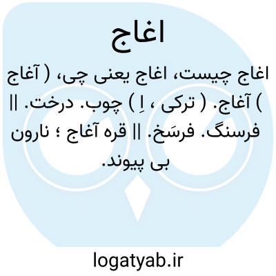 ( آغاج ) آغاج. ( ترکی، اِ ) چوب. درخت. || فرسنگ. فرسَخ. || قره آغاج؛ نارون بی پیوند.