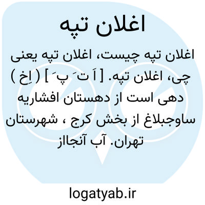 اغلان تپه. [ اَ ت َ پ َ ] ( اِخ ) دهی است از دهستان افشاریه ساوجبلاغ از بخش کرج، شهرستان تهران. آب آنجااز رودخانه تأمین می شود. محصول آن غلات، بنشن، صیفی، چغندر و انگور. شغل اهالی زراعت و گله داری است و سیصدتن سکنه دارد. ( از فرهنگ جغرافیایی ایران ج 1 ).