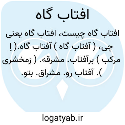( آفتاب گاه ) آفتاب گاه.( اِ مرکب ) برآفتاب. مشرقه. ( زمخشری ). آفتاب رو. مشراق. بتو. آنجای خانه که بیشتر روز آفتاب بدان تابد.