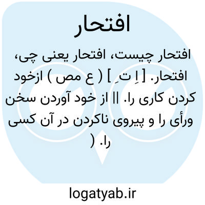 افتحار. [ اِ ت ِ ] ( ع مص ) ازخود کردن کاری را. || از خود آوردن سخن ورأی را و پیروی ناکردن در آن کسی را. ( منتهی الارب )( ناظم الاطباء ) ( آنندراج ). کلام و رأی بنظر خود آوردن و در آن از کسی پیروی نکردن. ( از اقرب الموارد ).