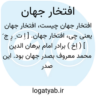 افتخار جهان. [ اِ ت ِ رِ ج َ ] ( اِخ ) برادر امام برهان الدین محمد معروف بصدر جهان بود. این صدر جهان از جمله اعاظم ملوک زمان بود. در سال 613 - 614 هَ. ق. که سلطان محمد خوارزمشاه عازم حمله به بغداد بود برای رعایت احتیاط صدر جهان و برادرش افتخار جهان و دو پسرش را از بخارا به خوارزم انتقال داد که مبادا در غیاب او سبب فتنه و فساد شوند و ایشان همچنان در خوارزم بودند تا بوقت آنکه ترکان خاتون مادر خوارزمشاه از خوف مغول مصمم گردید فرار کند. قبل از حرکت، صدر جهان و برادر و دو پسرش را با سایر ملوک اطراف که در خوارزم بود، همه را بکشت. ( از تعلیقات قزوینی بر لباب الالباب ص 335 ). و رجوع به چهارمقاله و سیرة جلال الدین منکبرنی شود.