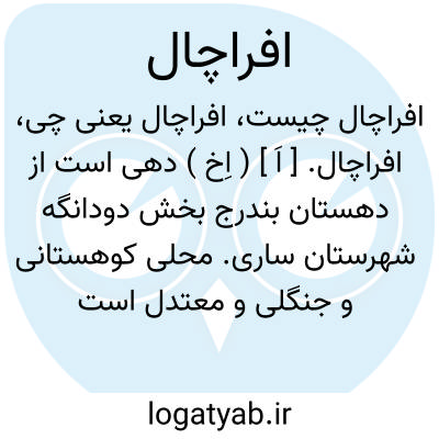 افراچال. [ اَ ] ( اِخ ) دهی است از دهستان بندرج بخش دودانگه شهرستان ساری. محلی کوهستانی و جنگلی و معتدل است و سکنه آن 180 تن. آب آنجا از چشمه و محصول آن برنج، غلات، لبنیات است. و شغل اهالی گاوداری و راه آن مالرو است و برنج در کنار رودخانه تجن زراعت میشود. ( از فرهنگ جغرافیایی ایران ج 3 ). و رجوع به سفرنامه مازندران رابینو شود.