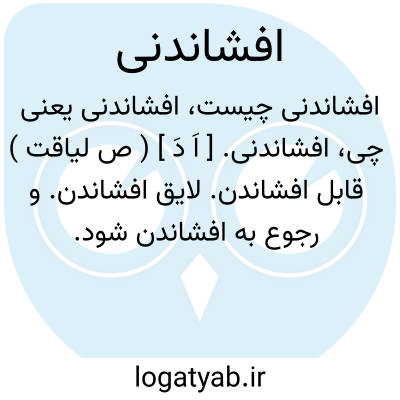 افشاندنی. [ اَ دَ ] ( ص لیاقت ) قابل افشاندن. لایق افشاندن. و رجوع به افشاندن شود.