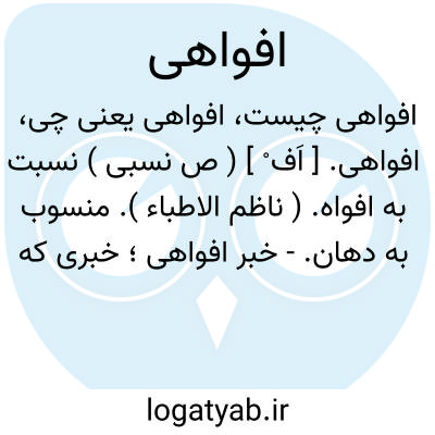 افواهی. [ اَف ْ ] ( ص نسبی ) نسبت به افواه. ( ناظم الاطباء ). منسوب به دهان.