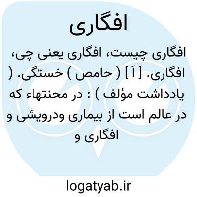 افگاری. [ اَ ] ( حامص ) خستگی. ( یادداشت مؤلف ): در محنتهاء که در عالم است از بیماری ودرویشی و افگاری و انواع عقوبات. ( کیمیای سعادت ).