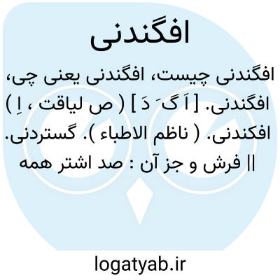 افگندنی. [ اَ گ َ دَ ] ( ص لیاقت، اِ ) افکندنی. ( ناظم الاطباء ). گستردنی. || فرش و جز آن: