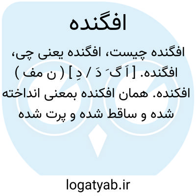 افگنده. [ اَ گ َ دَ / دِ ] ( ن مف ) افکنده. همان افکنده بمعنی انداخته شده و ساقط شده و پرت شده، گسترده، حذف شده، از شمار خارج گشته است. رجوع به افکنده شود:
