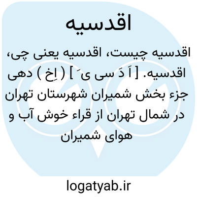 اقدسیه. [ اَ دَ سی ی َ ] ( اِخ ) دهی جزء بخش شمیران شهرستان تهران در شمال تهران از قراء خوش آب و هوای شمیران و محل اردوگاه تابستانی دانشکده افسری است. ( از فرهنگ جغرافیایی ایران ج 1 ).