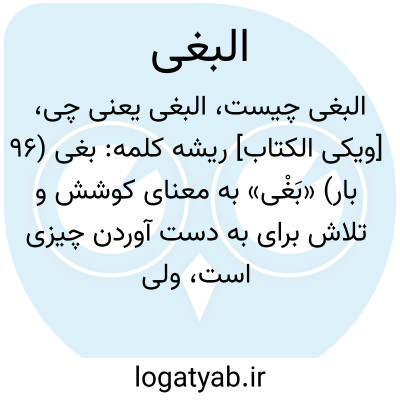«بَغْی» به معنای کوشش و تلاش برای به دست آوردن چیزی است، ولی غالباً به کوشش هایی گفته می شود که برای غصب حق دیگران است و لذا مفهوم آن غالباً با مفهوم ظلم و ستم مساوی است. روشن است توصیف «بَغْی»، به «غَیْرِ الْحَقّ» از قبیل توضیح و تأکید روی معنای «بَغْی» است. اما در ریشه اصلی لغوی آن «درخواست تجاوز و انحراف از خط میانه، و تمایل به افراط و تفریط» ذکر کرده اند; خواه به این درخواست جامه عمل پوشیده شود یا نه. گاه در «کمیّت» چیزی است و گاه در «کیفیت»; و به همین مناسبت غالباً به معنای ظلم و ستم به کار می رود. گاهی نیز به معنای هر گونه «طلب و تقاضا» هر چند امر خوب و شایسته ای باشد، آمده است. لذا «راغب» در «مفردات»، «بَغْی» را به دو شعبه تقسیم می کند; «ممدوح» و «مذموم» که اولی، تجاوز از حد عدالت، و رسیدن به احسان و ایثار و تجاوز از واجبات و رسیدن به مستحبات است; و دومی، تجاوز از حق و تمایل به باطل یا مشتبه است.